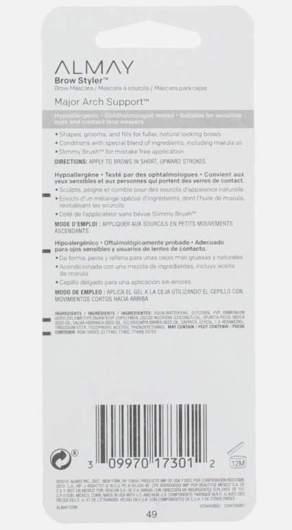 Get Really Real Brows(TM) with NEW Almay Brow Styler™ Brow Mascara. Unique Slimmy Brush™ shapes, grooms, and fills for fuller, natural looking brows. Simply apply to brows in short, upward strokes.