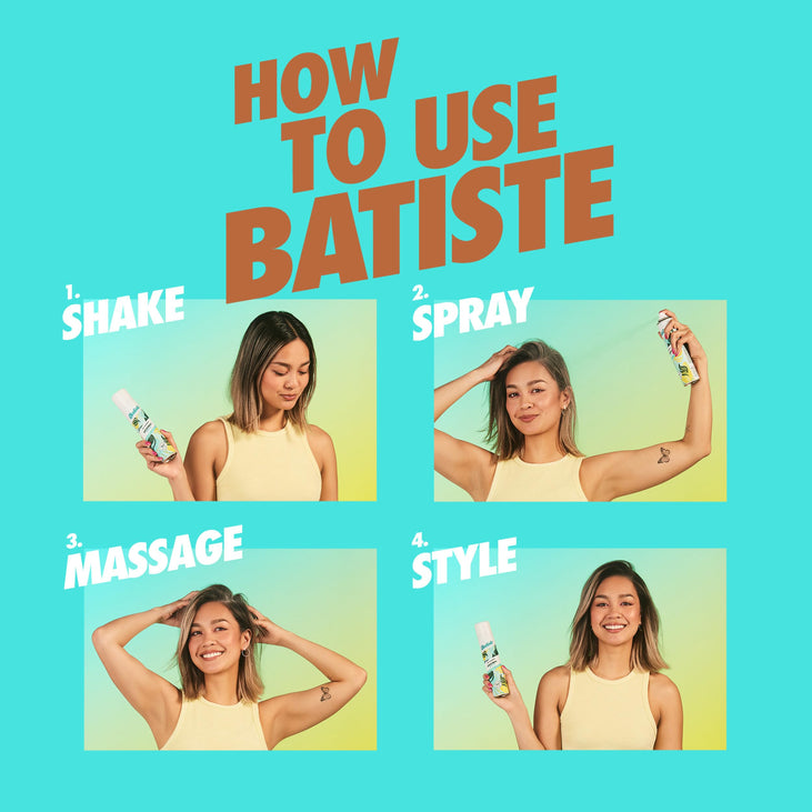 Take your hair from flat to fab with Batiste Dark Dry Shampoo. This waterless shampoo targets excess oil and grease at the roots to breathe new life into your hair, leaving you feeling clean between washes. Batiste Dark Hair Dry Shampoo is a tinted dry shampoo for brunettes, formulated with a hint of color so you can say goodbye to white residue and hello to a dry shampoo spray that blends seamlessly with your beautiful, dark hair. It also has mild notes of bergamot, white peach and vanilla bean for a pleasant scent. Batiste Dark dry shampoo is for anyone with shades on the dark hair spectrum — color treated or natural. From mahogany to chocolate to midnight black, this dry shampoo has you covered. This colored dry shampoo instantly makes your hair feel clean and fresh by removing oil, and provides added body and texture to give the appearance of fuller hair. Perfect for the girl-on-the-go, Batiste brunette dry shampoo helps save time by making styling your hair fast and easy. Let's face it, life gets crazy sometimes and skipping a wash (or two) is inevitable. Using this dry shampoo spray is easy. Shake the shampoo bottle thoroughly, section your hair and spray as much as you want 12 inches from your roots, use your fingertips to massage the Batiste shampoo into your hair and brush or style your hair however you want so you can get going. With Batiste Dry Shampoo, you can be confident your hair looks great no matter what life throws your way.