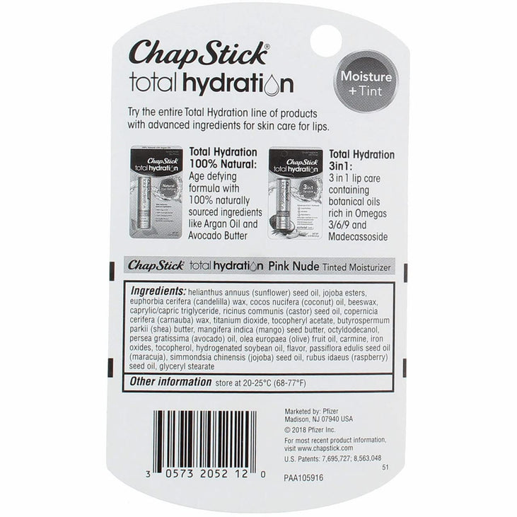 ChapStick Total Hydration Moisture + Tint Pink Nude Tinted Lip Balm Tube, 0.12 Oz