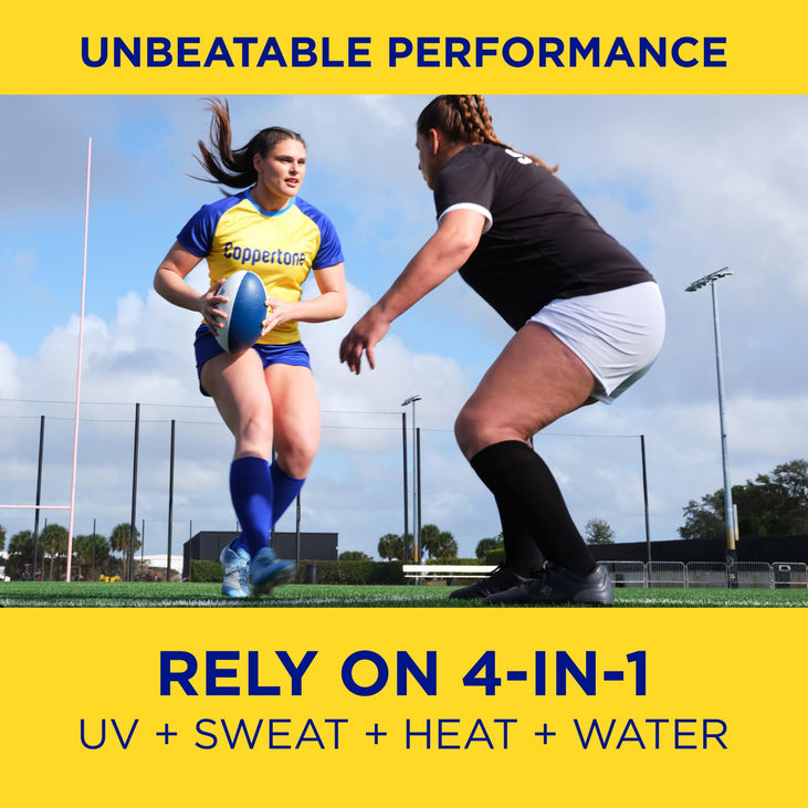 Whichever outdoor activity you’re passionate about, Coppertone Sport Continuous SPF 50 Sunscreen Spray is on your team. Offering four-in-one protection, this body sunscreen spray SPF 50 stops up to 98 percent of UVA/UVB rays while resisting sweat, heat and water. Designed to stay on strong, this high-performance spray sunscreen SPF 50 protects you from the sun with a durable and water resistant sunscreen formula (80 minutes). This Coppertone spray sunscreen has a continuous sprayer for application on any angle and a lightweight sunscreen formula that leaves a breathable feeling on your skin. Each sunscreen Coppertone creates follows a tradition of trusted, quality sun protection products. Coppertone has been providing continuous innovation for more than 75 years, and is voted the most trusted sunscreen brand.(1) Depend on this tough sport sunscreen spray during any outdoor activities, whether you’re getting out for a workday, heading to the big game, or enjoying an afternoon of fun in the sun. This bulk sunscreen pack includes three 5.5 ounce bottles of Coppertone Sport Sunscreen Spray so you can stock up. Use and reapply Coppertone sunscreen spray as directed. (1)Voted Most Trusted Sunscreen Brand by American Shoppers Based on the 2022 BrandSpark American Trust Study.
