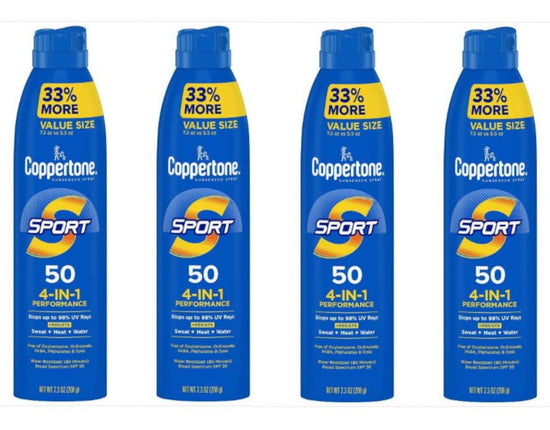Coppertone Sunscreen Spray Sport SPF 50 provides superior sun protection for active individuals. This advanced formula offers 4 in 1 performance, effectively stopping up to 98% of UV rays and resisting sweat, heat, and water for up to 80 minutes. The sunscreen is free of Oxybenzone, Octinoxate, PABA, phthalates, and dyes, ensuring safe and reliable protection. Its lightweight, non-greasy finish makes it easy to apply and comfortable to wear, keeping your skin shielded during all outdoor activities.