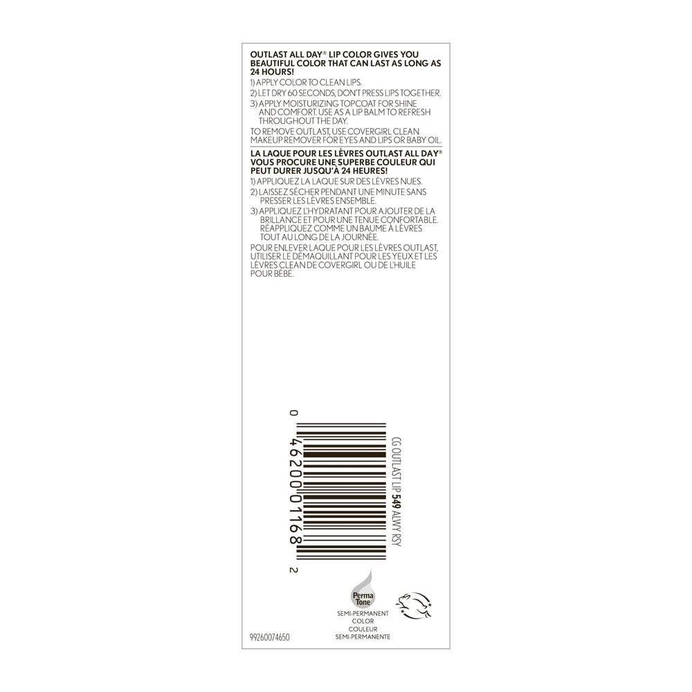 For when you need a long-wear lipstick that lasts, Outlast All Day Lip Color with Topcoat has an advanced formula that boasts resilient, brilliant coverage, color, and shine for up to 24 hours of color that stays true. The best part it's just 2 steps. Outlast's long-lasting lip color with topcoat is kiss-proof, food-proof, and transfer-resistant.