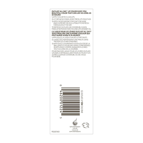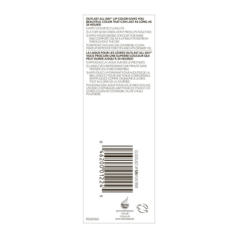Get brilliant lip color that lasts with Covergirl Outlast All-Day Lip Color. This advanced formula keeps lips looking vibrant and fresh for up to 24 hours. The nourishing topcoat locks in color and provides instant moisture for soft, shiny lips. And feel free to smooch away—this transfer-resistant lip color is kiss-proof, smudge-proof, and food-proof. Pro-tip: Pair with any Covergirl Outlast foundation for an all-day, worry-free look.