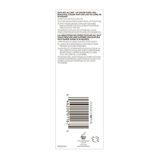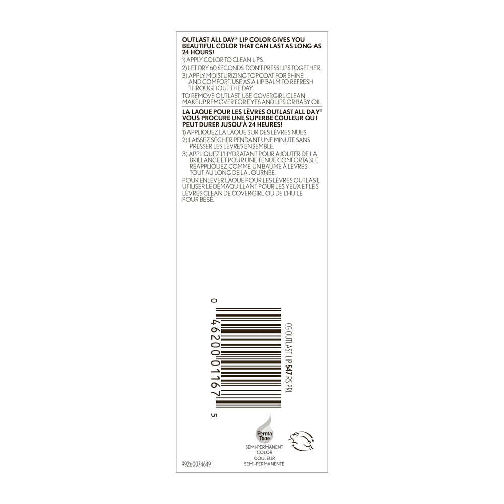 Get brilliant lip color that lasts with Covergirl Outlast All-Day Lip Color. This advanced formula keeps lips looking vibrant and fresh for up to 24 hours. The nourishing topcoat locks in color and provides instant moisture for soft, shiny lips. And feel free to smooch away—this transfer-resistant lip color is kiss-proof, smudge-proof, and food-proof. Pro-tip: Pair with any Covergirl Outlast foundation for an all-day, worry-free look.
