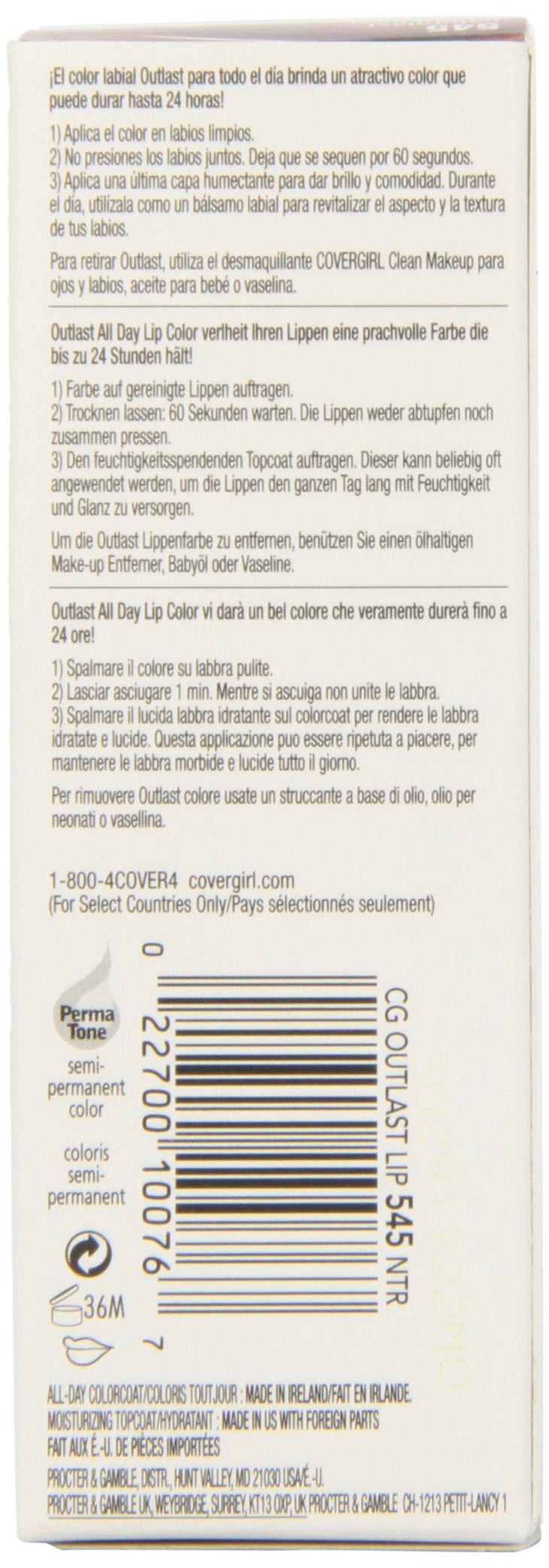 The #1 original long-wear lipcolor! Our advanced formula with resilient, brilliant coverage, color and shine gives you up to 16 hours of color that stays true in just 2 easy, breezy steps. Outlast has a moisturizing topcoat that helps lock in shine-no feathering, no bleeding. Food, Kiss and Workout-Proof, virtually life-proof. Moisturizing topcoat that keeps lips feeling moist, soft and smooth.
