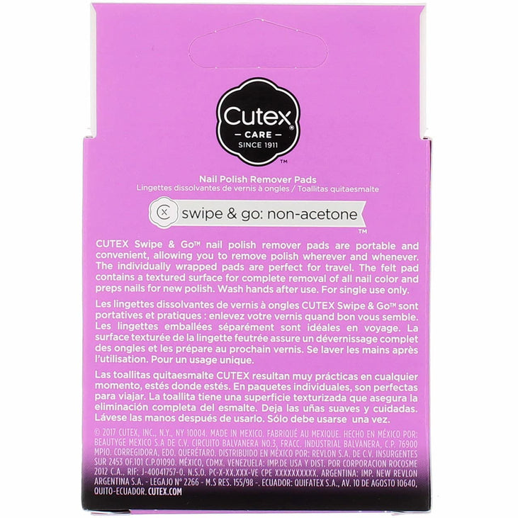 Cutex Care Swipe & Go Non-Acetone Nail Polish Remover Pads 10ct
