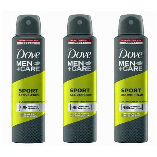 Dove Men + Care Sport Active Fresh Antiperspirant Deo Spray, 150ml (3 Cans)Dove Men + Care Sport Active Fresh Antiperspirant Deo Spray, 150ml (3 Cans)