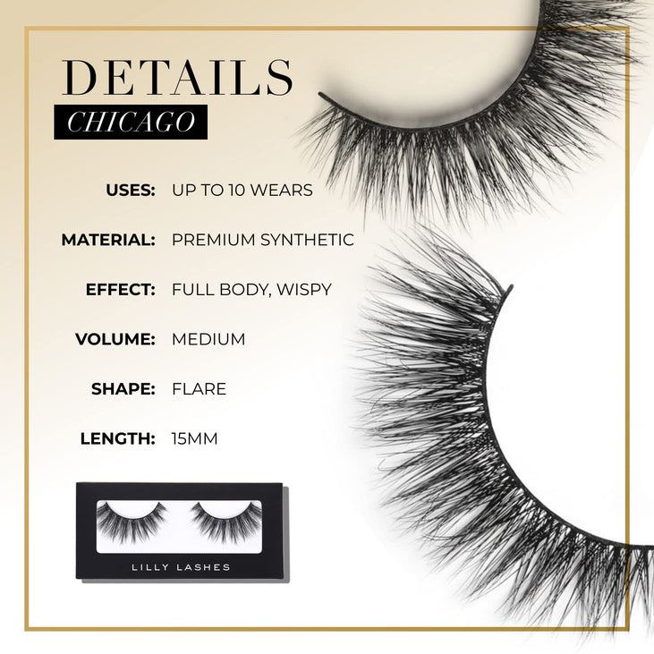 Lilly Lashes Premium Synthetic Lashes Chicago, Fake Eyelashes Natural Look, Flare Wispy Lash, False Lashes, Vegan Strip Lash, Reusable Up to 10 Wears, 15mm
