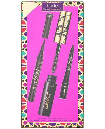 A vegan travel set of two eyeliners & a mascara for a fierce, feline gaze.
