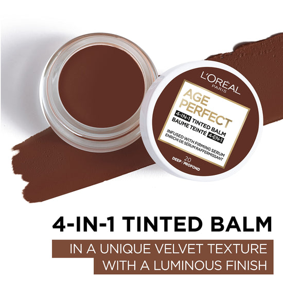 Skincare-Inspired Formula. Makeup Results plus Anti-Aging Care in 1 Swipe. A Tinted balm with 4-in-1 Benefits - Firms Overtime - Smooths Lines - Conceals Imperfections - Evens Tone. Infused with Firming Serum and 91% of women agree product minimizes imperfections like wrinkles and fine lines. Formula Melts into Skin Instantly & Smooths Complexion. Our Firming Serum Restores Skin Firmness. 100 percent agree skin feels comfortable throughout the day. Available in 8 Light to Medium coverage Blendable Shades ranging from deep to fair.
