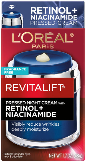 L'Oreal Paris Revitalift Pressed Night Cream with Retinol, Niacinamide, 1.7 oz, Anti-Aging Cream