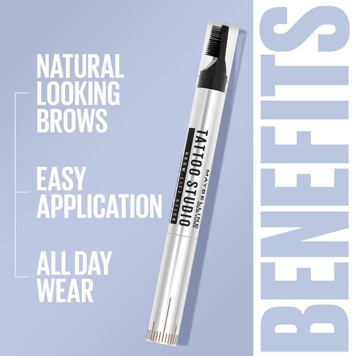 Maybelline TattooStudio Brow Lift Stick Makeup with Tinted Wax Conditioning Complex, Blonde, 1 Count
