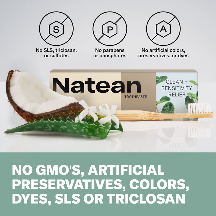 Natean Clean + Sensitivity Relief Toothpaste for Sensitive Teeth & Cavity Prevention, Mint - 4.7 oz
