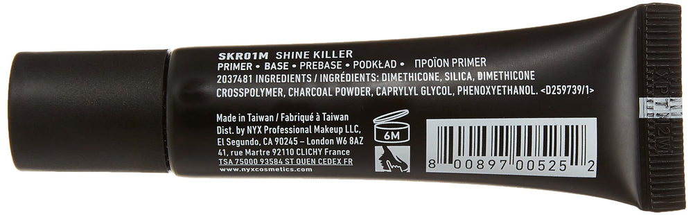 Infused with charcoal, known for its oil absorbing properties, this mattifying primer controls shine for a matte finish, that preps the skin for makeup application. This vegan formula applies easily and dries down to a translucent finish. This Product is also: Vegan Apply NYX Professional Makeup Shine Killer to clean skin with fingertips. Take special care in applying to your t-zone and areas where your skin gets especially oily. Pro tip: Allow a couple of minutes for Shine Killer primer to set before applying liquid foundations so the mattifying barrier can set. For most recent ingredient list, please refer to packaging.. DIMETHICONE • SILICA • DIMETHICONE CROSSPOLYMER • CHARCOAL POWDER • CAPRYLYL GLYCOL • PHENOXYETHANOL