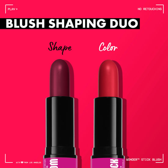 The ultra creamy blush shaping duo we've all been waiting for. The 1st dual-ended cream blush stick that melts into skin like a wonder. Color, shape & blend with three flushed shade pairings that are vegan and cruelty free. With hyaluronic acid to hydrate & improve the appearance of your skin! First apply the dark shade where you would usually contour to shape, then apply the light shade to the top of your cheek bones to add color. Blend upwards toward your temple to buff out the color for an effortless flushed glow. Pro tip: Apply both shades to shape your face with color, or use one shade for a more natural blush look. Can be used for soft or full glam, the wonder is in your hands.