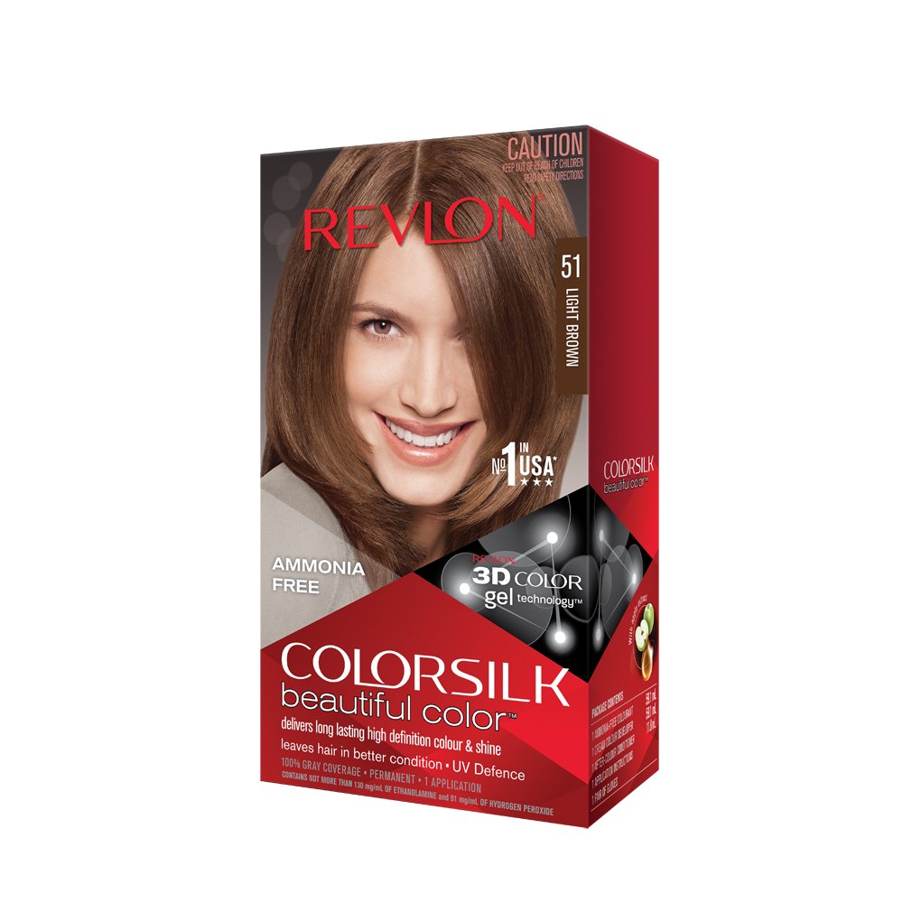 ColorSilk Beautiful Color is the #1 brand in the USA . The ammonia-free hair color delivers 100% gray coverage. Achieve rich, long lasting hair color and a radiant shine at home. Revlon’s 3D Color Gel Technology delivers natural looking, multi-tonal color from root to tip providing definition and boosting your hair’s dimension. Hair is left feeling silky, shiny and healthy, and in better condition than before coloration. Revlon's calculations based on Nielsen ScanTrack unit sales data for U.S. Hair color category last 52 weeks ending 6/29/2019 across xAOC and Nielsen U.S. panel data FY 2018.