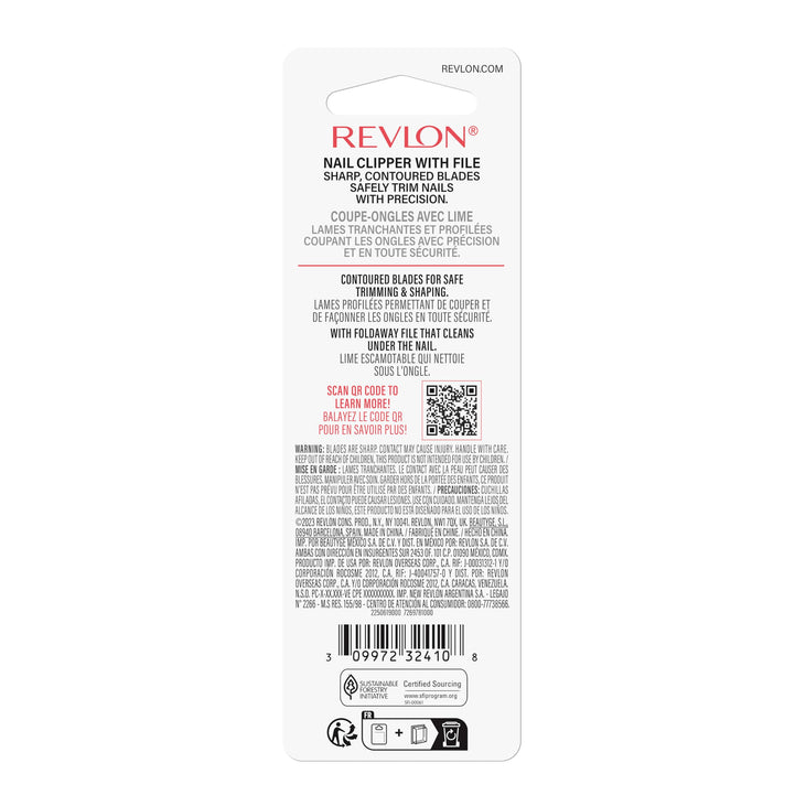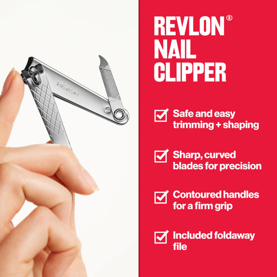 Our simple to use nail clipper is perfect for trimming and grooming your nails at home. Contoured handles are comfortable to hold, while the lever-action blades work easily with either hand. Includes a foldaway file to shape, smooth and gently clean under nails. Revlon is a global leader in cosmetics, hair color, fragrances, skincare, and beauty care products. One of the strongest consumer brand franchises in the world, Revlon products are sold in over 100 countries across six continents. Revlon revitalized the industry over the years with iconic nail and lip colors and with breakthrough technology like ColorStay transfer-resistant lipstick and makeup
