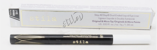Conveniently packaged in a dual-ended pen, Stila’s award-winning liquid eye liner features two complementary shades in a luxurious, satin finish, and two different applicator tips on each side, enabling you to create a variety of eye-opening effects from ultra-thin, precise lines to bold, graphic looks: - ORIGINAL: Precision marker-like tip delivers any look—from a thin line to a bold, dramatic stroke. - MICRO TIP: Ultra-precise tip for superior control and accuracy. The waterproof, transfer-proof, long-wearing formula glides on with ease, dries quickly, won't smudge, and stays put all day-into-night. The fine tips offer precise application from novices to pros and result in beautifully defined and adorned eyes that will leave a lasting impression.