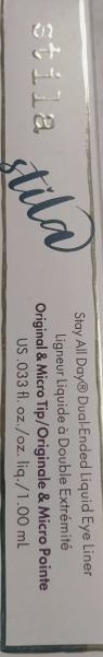 Conveniently packaged in a dual-ended pen, Stila’s award-winning liquid eye liner features two complementary shades in a luxurious, satin finish, and two different applicator tips on each side, enabling you to create a variety of eye-opening effects from ultra-thin, precise lines to bold, graphic looks: - ORIGINAL: Precision marker-like tip delivers any look—from a thin line to a bold, dramatic stroke. - MICRO TIP: Ultra-precise tip for superior control and accuracy. The waterproof, transfer-proof, long-wearing formula glides on with ease, dries quickly, won't smudge, and stays put all day-into-night. The fine tips offer precise application from novices to pros and result in beautifully defined and adorned eyes that will leave a lasting impression.
