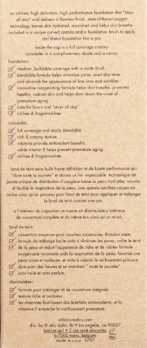An oil-free, high definition, high performance foundation that "stays all day" and delivers a flawless finish. Unique oxygen technology leaves skin hydrated, nourished and helps prevent premature aging. This foundation glides onto skin, immediately going to work to help minimize skin blemishes and imperfections. This dreamy formula glides onto skin and immediately goes to work to help minimize skin blemishes and imperfection. It is also enriched with an array of skin loving ingredients, and unlike other long-wearing formulas, includes a synergistic combination of botanical extracts that have been shown to help enhance circulation and blood flow, resulting in an increase of oxygen being delivered to the skin and letting skin breathe. These innovative extracts also help to slow down the onset of premature aging and promote healthy, hydrated and vibrant skin. This multi-tasker also contains a creamy, full coverage concealer cleverly hidden inside the cap (along with a handy mirror) that instantly hides blemishes, dark circles and age spots creating an impeccable canvas for flawless makeup application. Product also comes with a spatula and brush for ease of application.