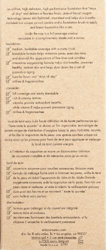 Product Description An oil-free, high definition, high performance foundation that "stays all day" and delivers a flawless finish. Unique oxygen technology leaves skin hydrated, nourished and helps prevent premature aging. This foundation glides onto skin, immediately going to work to help minimize skin blemishes and imperfections. This dreamy formula glides onto skin and immediately goes to work to help minimize skin blemishes and imperfection. It is also enriched with an array of skin loving ingredients, and unlike other long-wearing formulas, includes a synergistic combination of botanical extracts that have been shown to help enhance circulation and blood flow, resulting in an increase of oxygen being delivered to the skin and letting skin breathe. These innovative extracts also help to slow down the onset of premature aging and promote healthy, hydrated and vibrant skin. This multi-tasker also contains a creamy, full coverage concealer cleverly hidden inside the cap (along with a handy mirror) that instantly hides blemishes, dark circles and age spots creating an impeccable canvas for flawless makeup application. Product also comes with a spatula and brush for ease of application. Set Contains: Stay All Day Foundation; Stay All Day Concealer; Foundation Scoop; Brush